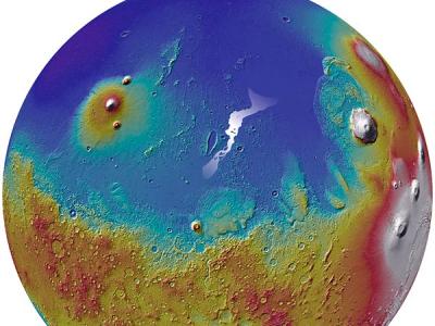 The Marte Vallis channel system (white area, center) on Mars. Evidence of ...
