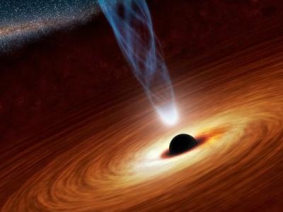 An artist's concept illustrates a supermassive black hole with millions to ...