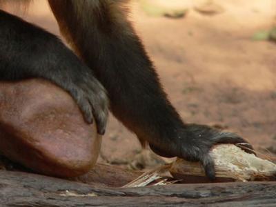 Bearded capuchin monkeys place nuts in their most stable positions before c...