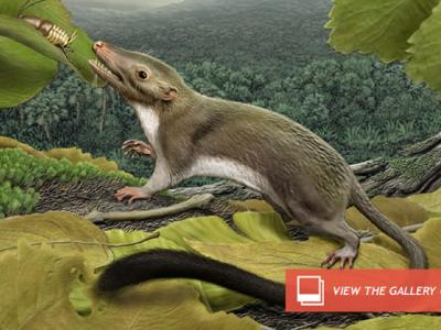 An artist's rendering of the shrew-sized Cretaceous-age animal, Ukhaatheriu...