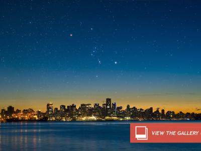 The constellation of Orion setting over the Vancouver, Canada skyline. Of ...