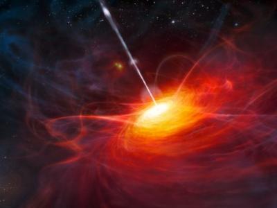 A quasar jets energy in an illustration. A newfound quasar cluster is the u...