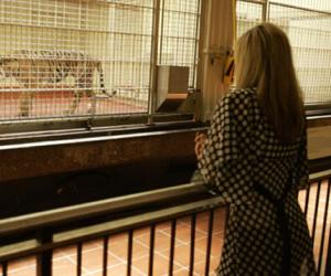 visitor at the San Francisco Zoo visitor watches Tatiana, a Siberian ...