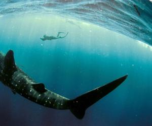 Ningaloo Marine Park, Australia, November 29, 2007—Diver Brad Norman snaps...