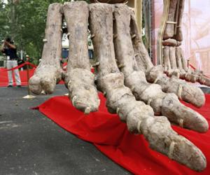 Parts of this hundred-million-year-old dinosaur, photographed on July 3, 20...