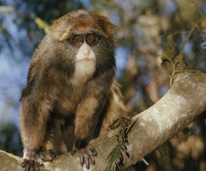 A one-year-old De Brazza's monkey perches on a branch in Kenya in this file...
