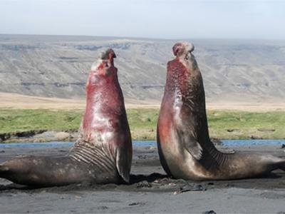 Two male southern elephant seals clash over a harem. This photograph won th...