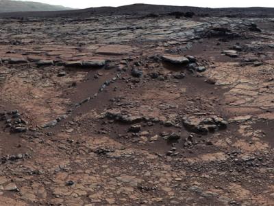 This mosaic of images from Curiosity's Mast Camera (Mastcam) shows geologic...