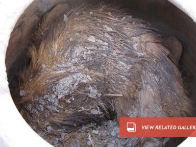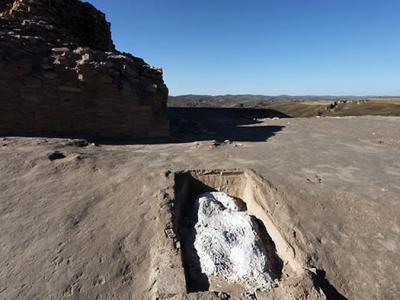 This picture taken on Oct. 10, 2013 shows a grave protected by plaster afte...