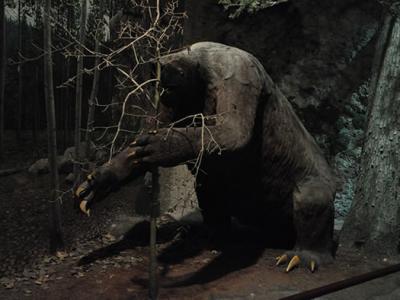 A recreation shows a giant sloth, which could grow to 15 feet and weigh 2-4...