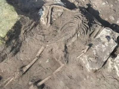 Archaeologists have discovered skeletons lying in their death pose inside a...