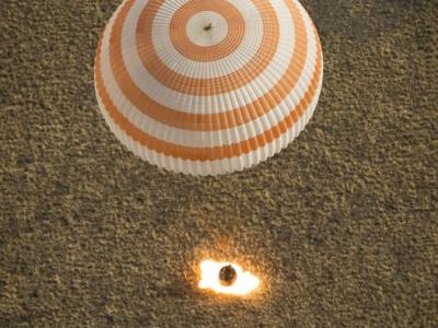 The Soyuz TMA-08M spacecraft with Expedition 36 Commander Pavel Vinogradov ...