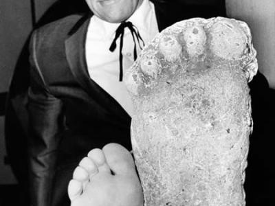 Photographer Roger Patterson compares his foot with cast in Los Angeles on ...