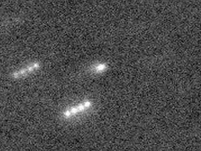 档案天空调查显示,1952年某晚,五个短暂的物体(蓝色圆圈)在一小时内出现又消失。...