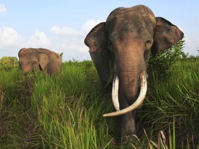 Asian elephants, Way Kambas National Park, Sumatra, INDONESIA When an old ...