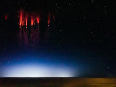Column-shaped red sprites in a photo snapped Aug. 12, 2013 above Red Willow...