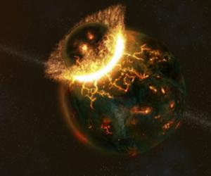 The moon formed from Earth fragments after a collision with a giant, Mars-s...