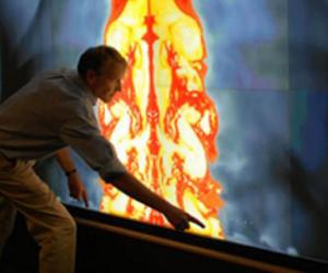 Physicist Mark Boslough points out "hot spots" in the computer-generated im...