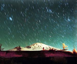 Leonid meteors dot the sky over snow-capped Mount Fuji, Japan's highest mou...
