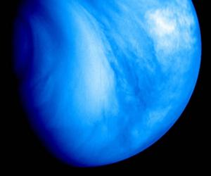 The southern hemisphere of Venus shines like a bright blue marble in this i...