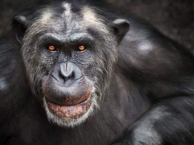 Chimpanzees (pictured, an elderly male) are less content in middle age, a n...