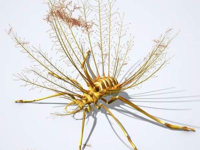 An artist's conception of the fossilized lacewing larvae with the beginning...