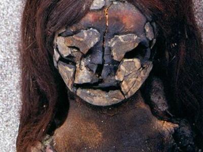 A naturally mummified Chinchorro child found in a Chilean desert. Brian H...