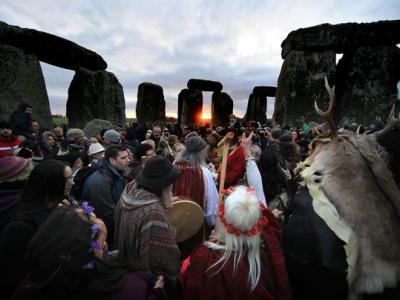 A crowd celebrates last year's winter solstice at Stonehenge. Today is the...