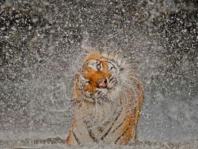 Winner: Grand Prize and Nature An Indochinese tigress named Busaba shakes ...