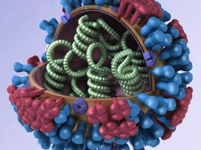 A 3-D illustration shows the structure of a generic influenza virus. This ...