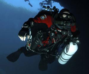 Diver Jarred Jablonski swims through the cavern entrance to Florida's Wakul...