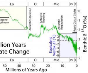 A chart of temperature data for the past 65 milion years shows the sudden a...
