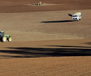 A farmer sows his winter crop near Woodstock, Australia, about 155 miles (2...