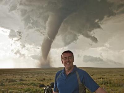 Roger Hill in front of a 2010 tornado near Campo, Colorado. Most people ru...