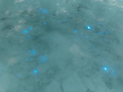 研究人员在俄罗斯北极圈的白海生物工作站附近,发现雪地里的海洋桡足类发出了明亮的...