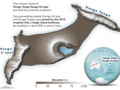 数字高度图展示Hunga Tonga-Hunga Ha'ap