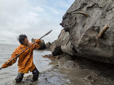 在俄罗斯北部有大量猛犸象化石,古代猎人杀死猛犸象并以它们为食,而剩余食物都会藏...