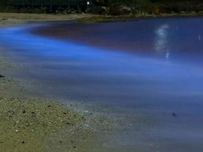 澳大利亚东部马拉巴尔海岸附近的海水在夜间发出蓝光 澳大利亚东部马拉巴尔海岸...