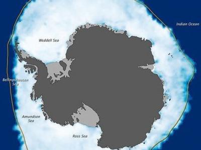 9月26日卫星观测的南极海冰面积情况,约为1944万平方公里 尽管目前关于地球变暖...