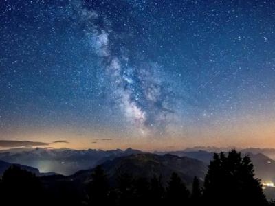 从瑞士1890米高石丹峰拍摄的银河 瑞士石丹峰上的高空缆车 从瑞士1890米高的石...