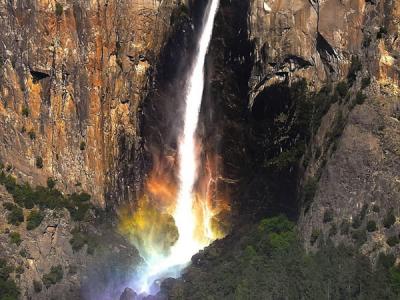 美国加州优胜美地国家公园瀑布下方现梦幻彩虹 美国加州优胜美地国家公园瀑布下...