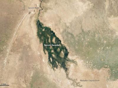 博茨瓦纳萨维缇河2012年不同寻常的洪水景象 美国宇航局地球观测站公布了一张卫星...