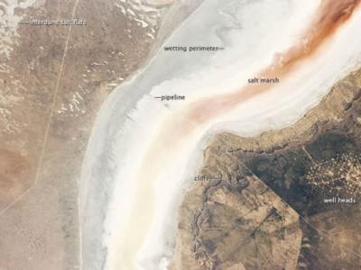 哈萨克斯坦里海附近凯达克盐沼 美国宇航局地球观测站今日公布了一张宇航照片,展...