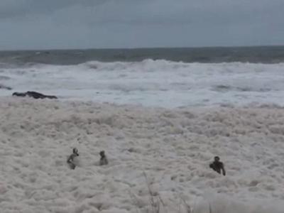 澳大利亚海滩现海浪泡沫奇观 澳大利亚海滩现海浪泡沫奇观 澳大利亚海滩现海...