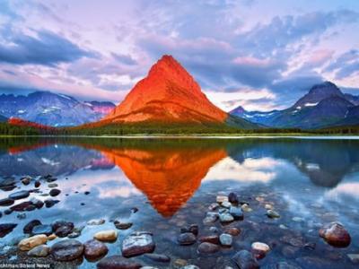 美国国家公园捕捉到罕见的日出美景 这座山在没有太阳光直接照射时的照片 摄影...