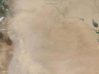 卫星照片展示中东地区的沙尘暴 美国宇航局地球观测站今日公布了一张卫星照片,展...