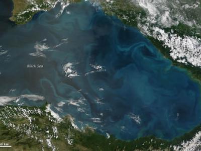黑海中浮游植物的繁荣景象 美国宇航局地球观测站今日公布了一张卫星照片,展示了...