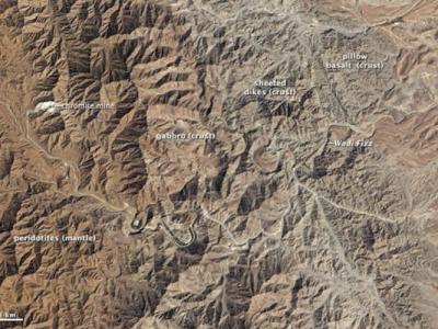 阿曼东北山区的塞迈尔蛇绿岩地貌 美国宇航局地球观测站公布了一张卫星照片,展示...
