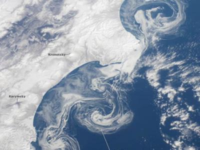 俄罗斯堪察加半岛海岸线上的浮冰 美国宇航局地球观测站今日公布了一张卫星照片,...