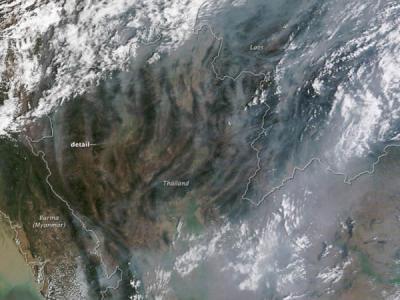 泰国部分地区上空的烟雾 先进的陆地地成像仪(ALI)拍下了泰国火灾的一幅近景...